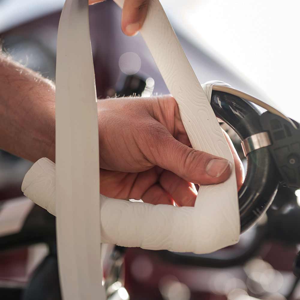 Sio Dura it is the essential tape of the Guee collection. Sio Dura stands for ”durable silicone” and it provides innovative properties of superior lifetime durability, hand grip, and comfort . Sio Dura is produced with the best German silicone raw material hence it provides a longer lifetime comparing to other silicone tapes available in the market. Sio dura is also an eco-friendly product as a matter of fact the production stage allows green production processes. Furthermore it is possible to re-wrap Sio Dura multiple times without leaving any adhesive marks on the handlebar thanks to the self sticky property without any back adhesive.