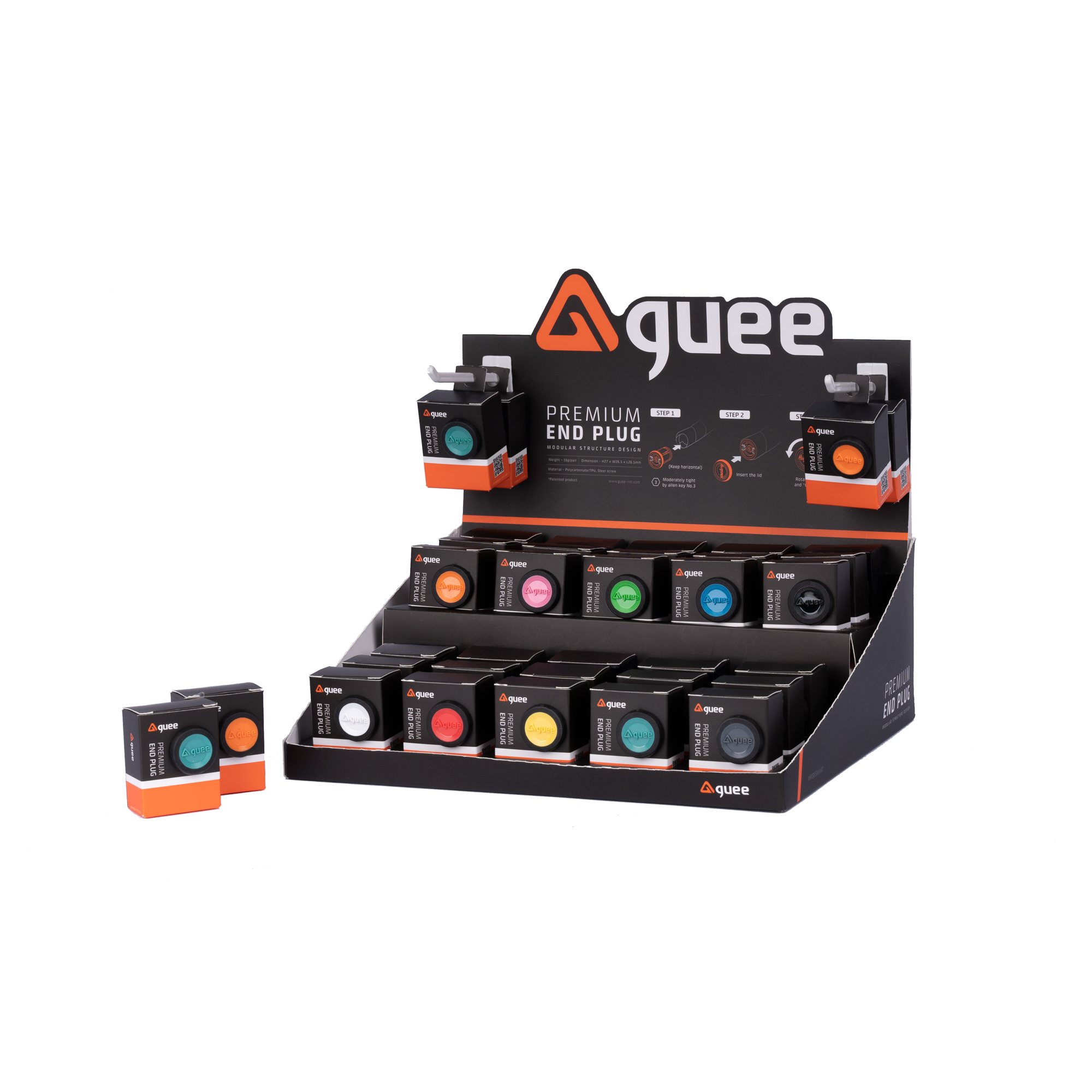 尾塞採用標準的膨脹鎖固系統,通過一顆需適度鎖緊的螺絲來固定。尾塞配備了彩色塑膠上蓋,外緣有防震TPU環,可以保護把手避免受到撞擊或跌落的損傷。彩色上蓋只需簡單地旋轉90度就能更換,可以與把帶或自行車顏色互相搭配。上蓋還壓印了Guee的凸紋logo。在最好的自行車商店裡,探索這款全新的高階鎖固式尾塞系列和尾塞展示盒。